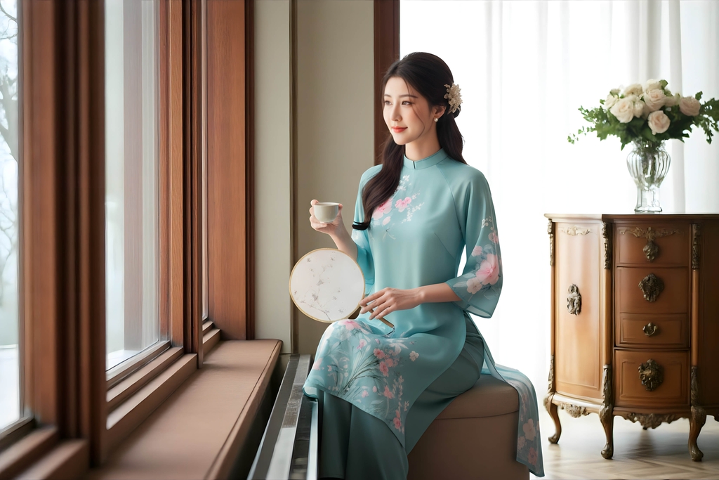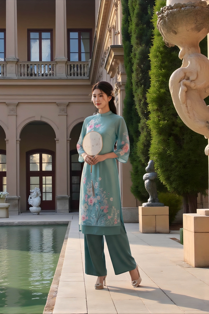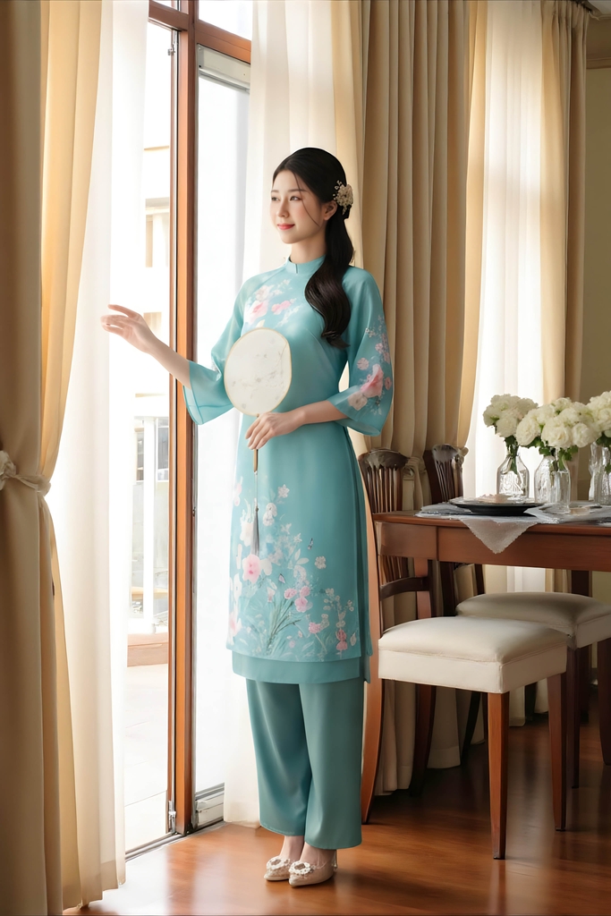 Phong cách thiết kế: Tơ mềm mại giúp áo dài suông rũ nhẹ, tạo cảm giác bay bổng, còn Taffeta mang lại độ đứng, giữ form áo thanh lịch. Sự kết hợp này làm nổi bật nét duyên dáng truyền thống nhưng vẫn mang hơi hướng hiện đại, phù hợp cho cả sự kiện trang trọng lẫn thời trang đời thường.