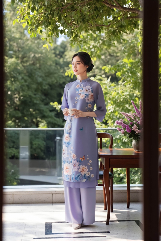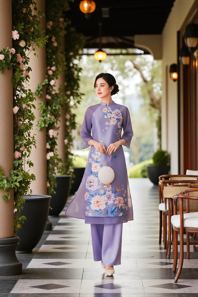 Phong cách thiết kế: Tơ mềm mại giúp áo dài suông rũ nhẹ, tạo cảm giác bay bổng, còn Taffeta mang lại độ đứng, giữ form áo thanh lịch. Sự kết hợp này làm nổi bật nét duyên dáng truyền thống nhưng vẫn mang hơi hướng hiện đại, phù hợp cho cả sự kiện trang trọng lẫn thời trang đời thường.