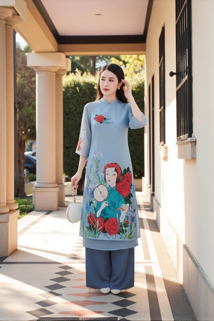 Phong cách thiết kế: Tơ mềm mại giúp áo dài suông rũ nhẹ, tạo cảm giác bay bổng, còn Taffeta mang lại độ đứng, giữ form áo thanh lịch. Sự kết hợp này làm nổi bật nét duyên dáng truyền thống nhưng vẫn mang hơi hướng hiện đại, phù hợp cho cả sự kiện trang trọng lẫn thời trang đời thường.